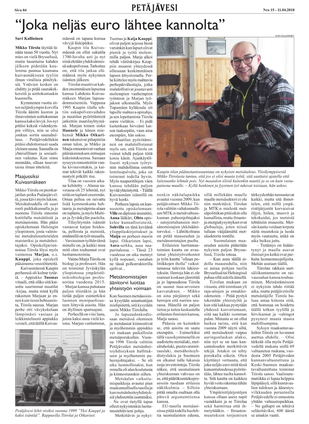 Joka neljäs euro lähtee kannolta - Petäjävesi-lehden 50 v haastattelu